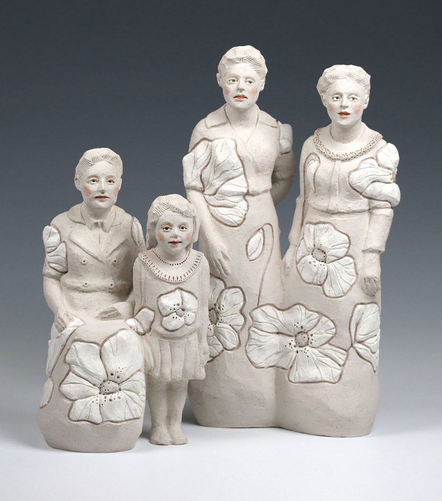 Inspirée d’une photo de famille prise en 1914 avant la déclaration de guerre, l’œuvre rend hommage au courage de cette moitié de l’humanité – toutes les générations de femmes – qui traversent et endurent les guerres, et dont la mémoire reste si discrète aujourd’hui encore. Qu’aurait représenté la photo si elle avait été prise de nouveau 4 ans plus tard après l’Armistice ? Qu’ont vécu ces femmes pendant la guerre ? Qui étaient-elles ? Que sont-elles devenues après ?