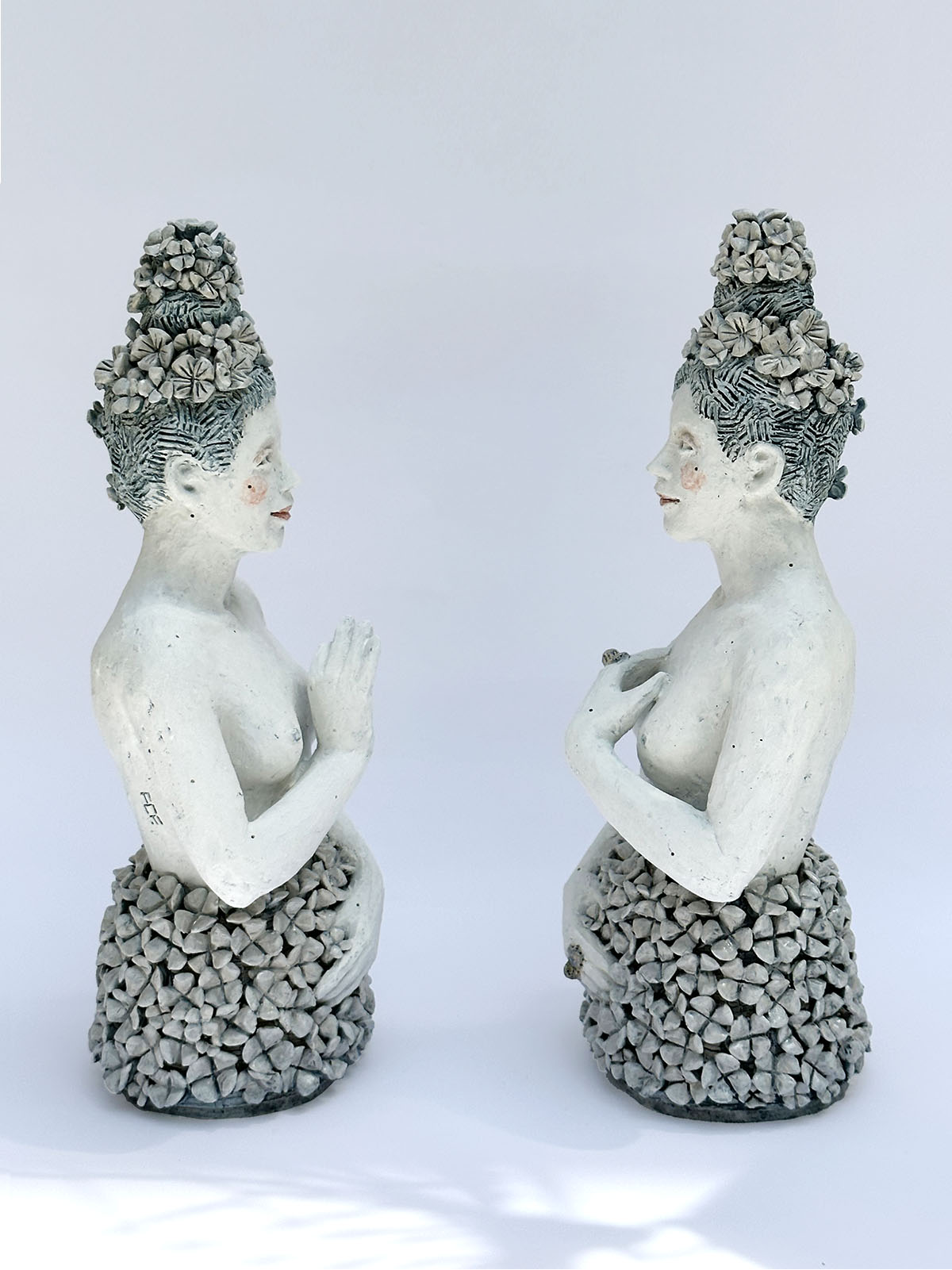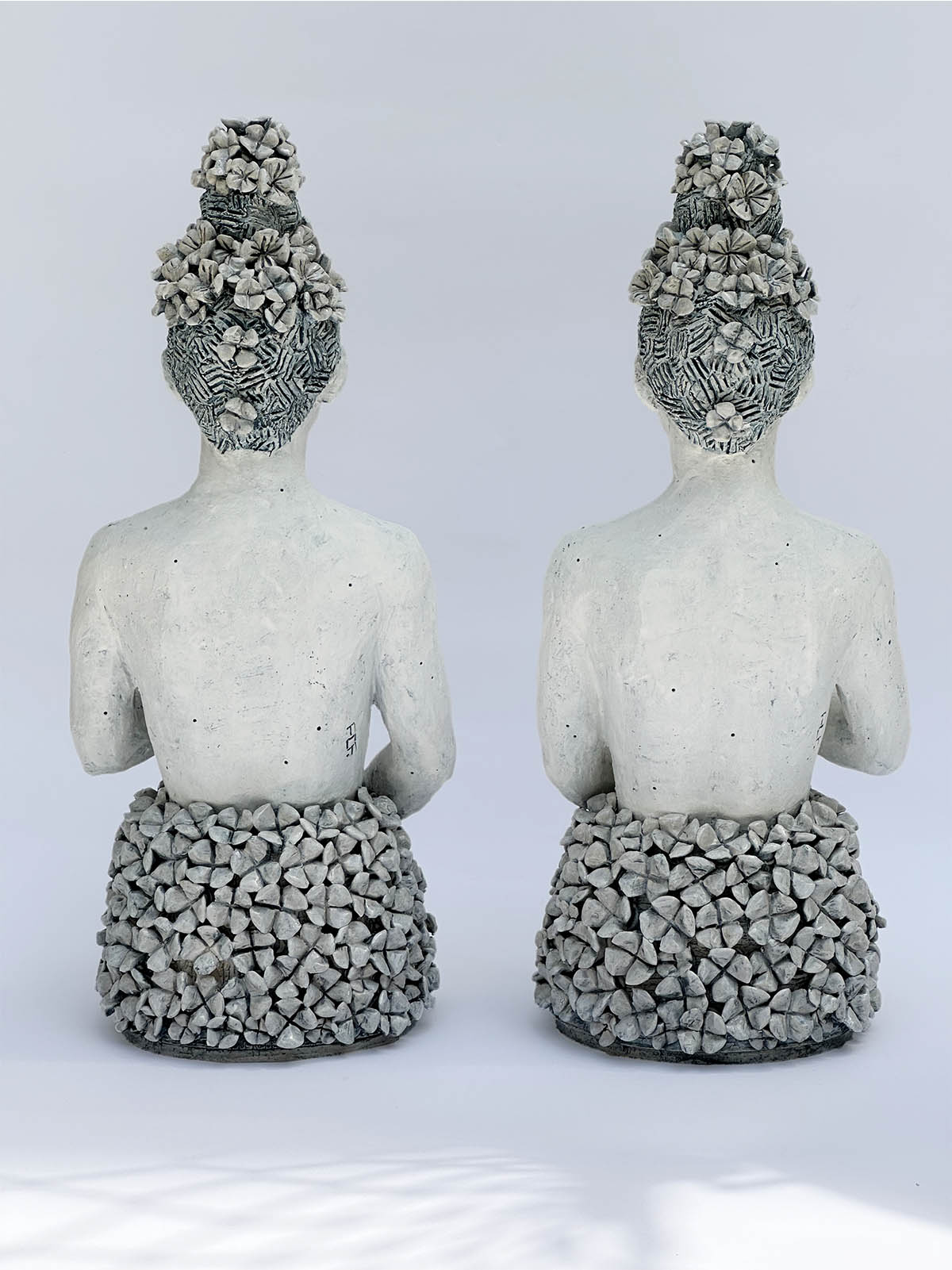 Première version • h 38 x14x15 cm / Faïence engobée, émail partiel – 2023
