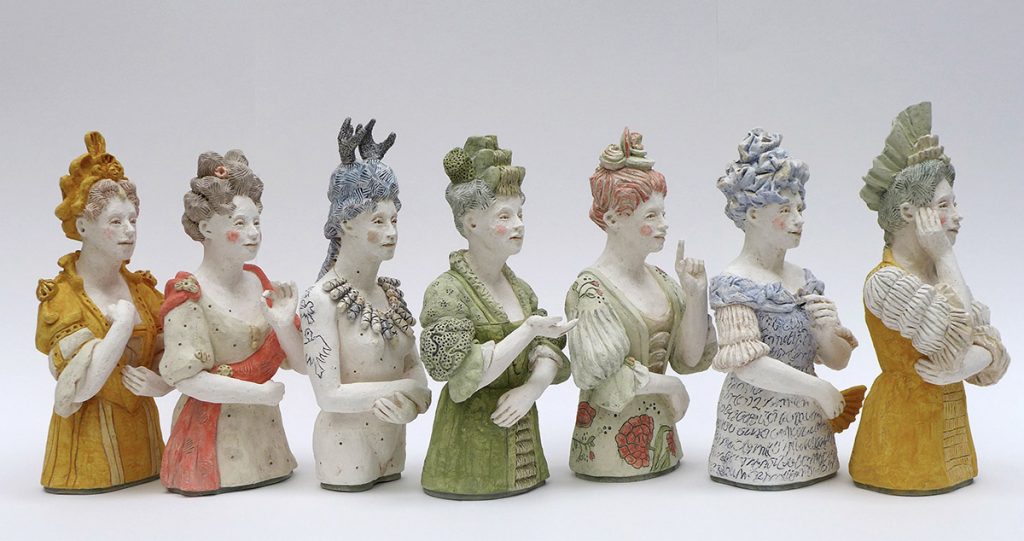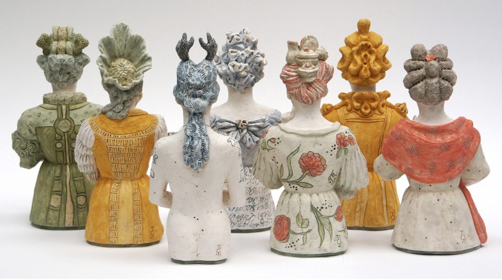 Crée pour l’exposition Réminiscences au château de Lunéville, l’œuvre s’inspire de la vie d’ Elisabeth-Charlotte d’Orléans, Duchesse de Lorraine. Regard contemporain sur la condition féminine, ce portrait est celui d’une femme devenue multiple : femme-dentelle, femme-cadre, femme-vaisselle, femme-jardin, femme-correspondance et femme-fard, qui sont autant d’évocations de l’art de vivre qu’elle a su faire rayonner à sa cour au château de Lunéville au XVIIIe siècle.