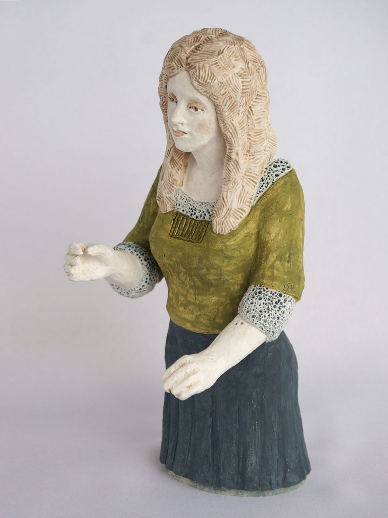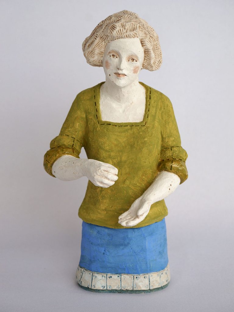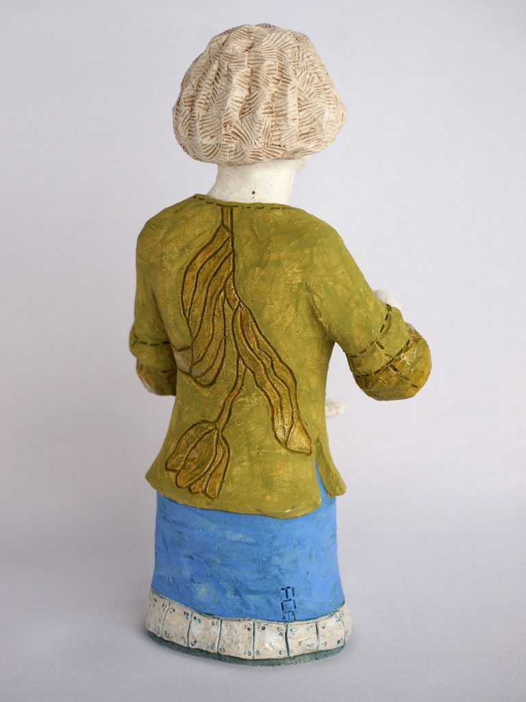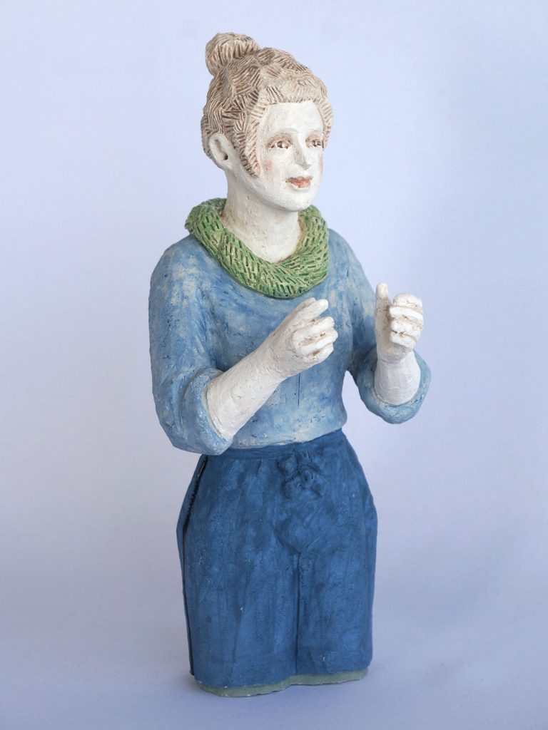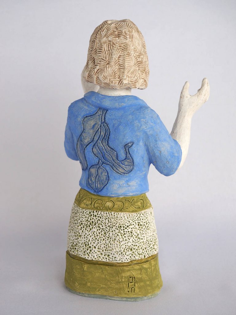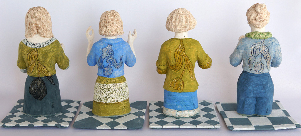 xx• 4 figurines de h 29 x 14 x 12 cm / socle 17×17 cm / Faïence engobée, émail partiel -2020